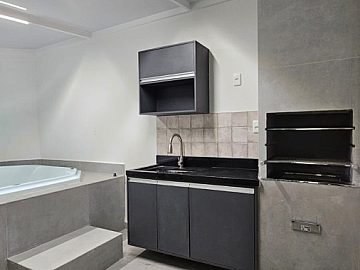 Área gourmet c/ churrasqueira, bancada, chuveirão;