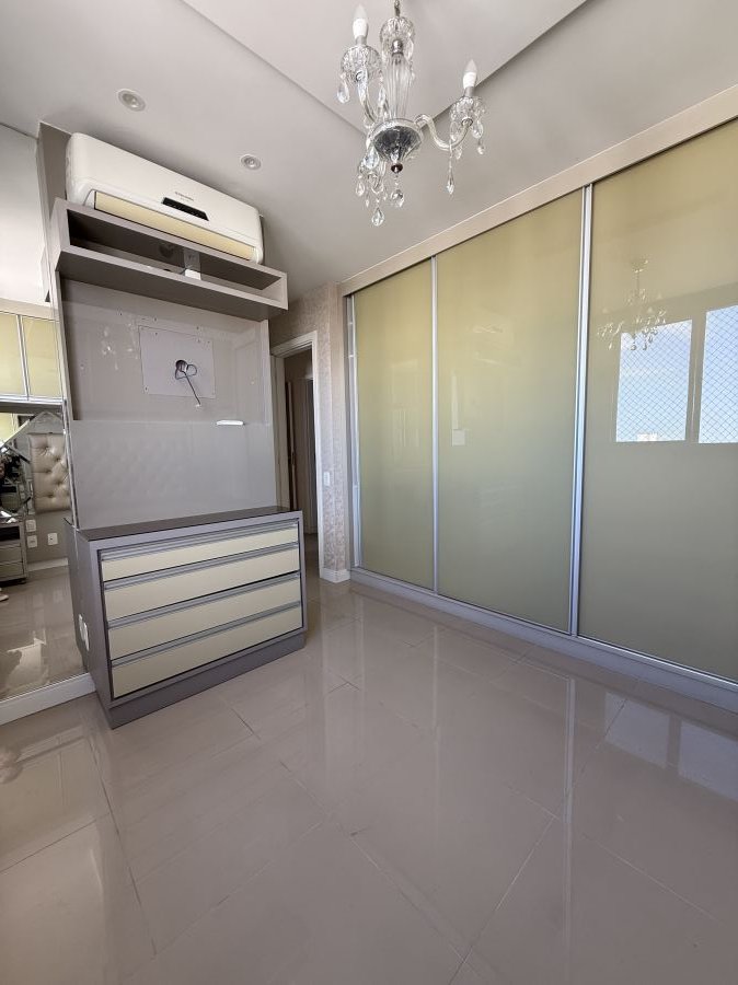 Com uma área privativa de 102,75 m², a unidade foi projetada para oferecer máxima funcionalidade e aproveitamento de espaço. O imóvel dispõe de 4 dormitórios, sendo 2 suítes, totalizando 4 banheiros, o que garante privacidade e conforto para famílias de diferentes perfis. O apartamento é entregue semimobiliado e está em estado de "pronto para morar", fator que otimiza o tempo de ocupação e reduz custos iniciais de adaptação. A planta inclui uma sala ampla conectada à varanda e conta com duas vagas de garagem.